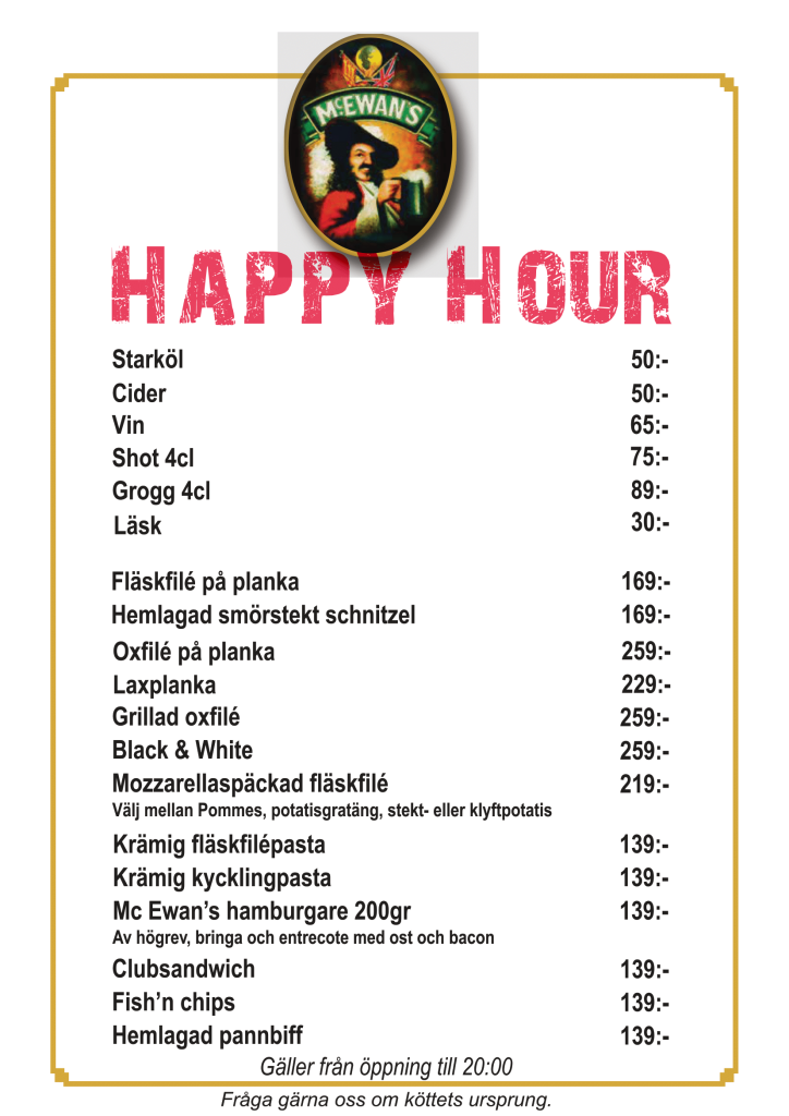 Tanken med McEwan’s Pub är enkel – vi vill ge dig en riktigt trevlig upplevelse med god mat, kall dryck och härlig stämning, utan att det ska kosta skjortan.